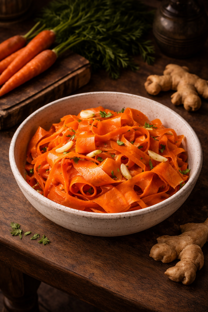 - Use a vegetable peeler or mandolin to cut carrots into ribbons. Place in a large bowl; add almonds.